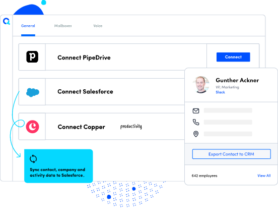 PersistIQ has native bi-directional sync integrations with Copper, PersistIQ, and Salesforce. Sync your contact records, sync activities, and add contacts to PersistIQ Campaigns from within your CRM
